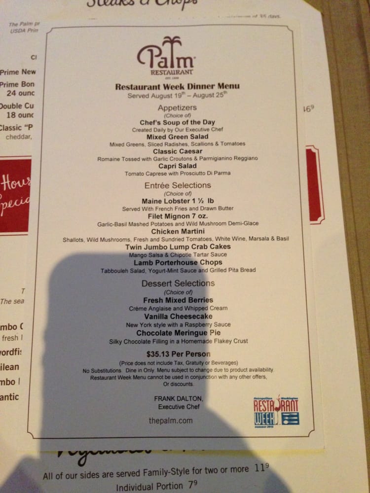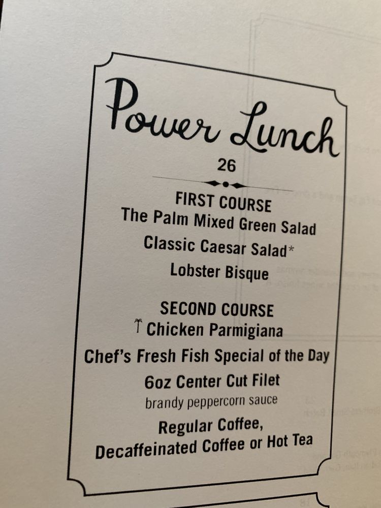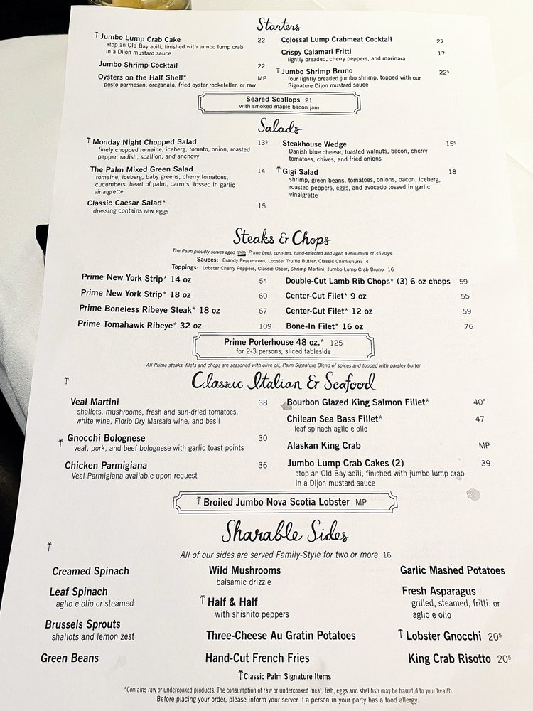 The Palm proudly serves aged USDA Prime beef, cornfed, hand selected and aged a minimum of 35 days.